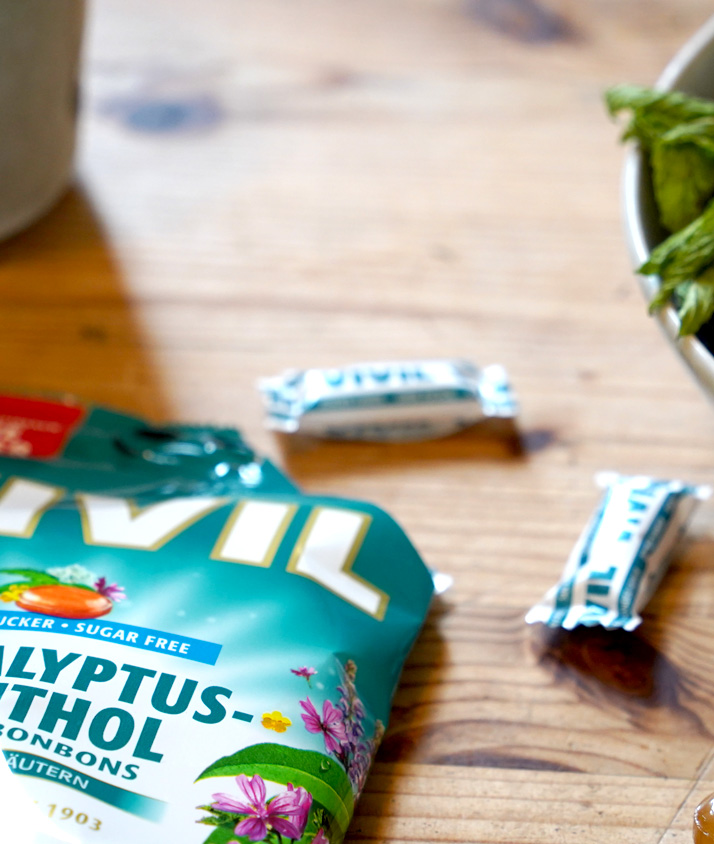 Whether you're on the go, at the office or travelling – eucalyptus-menthol is always with you! The refreshing combination of eucalyptus and menthol provides intense freshness and invigorates your breath. The cooling taste gives you a short break and ensures clarity and well-being whenever you need it.