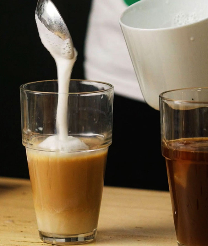 8. Rühre vorsichtig um und serviere den Eiskaffee.